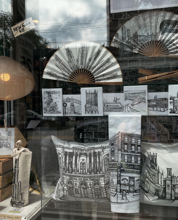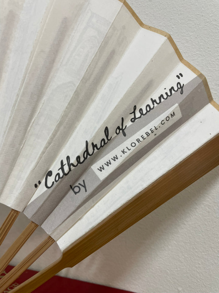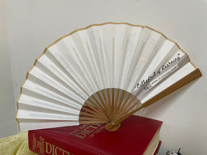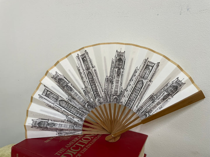 This folding accordion hand fan, featuring a hand-drawn design of The Cathedral of Learning in Pittsburgh, PA, created by Kirsten Lowe-Rebel, is a go-to accessory for keeping yourself cool in the heat and humidity. Folds away easily and can be tucked into your bag or pocket! Made of high quality bamboo and paper materials.