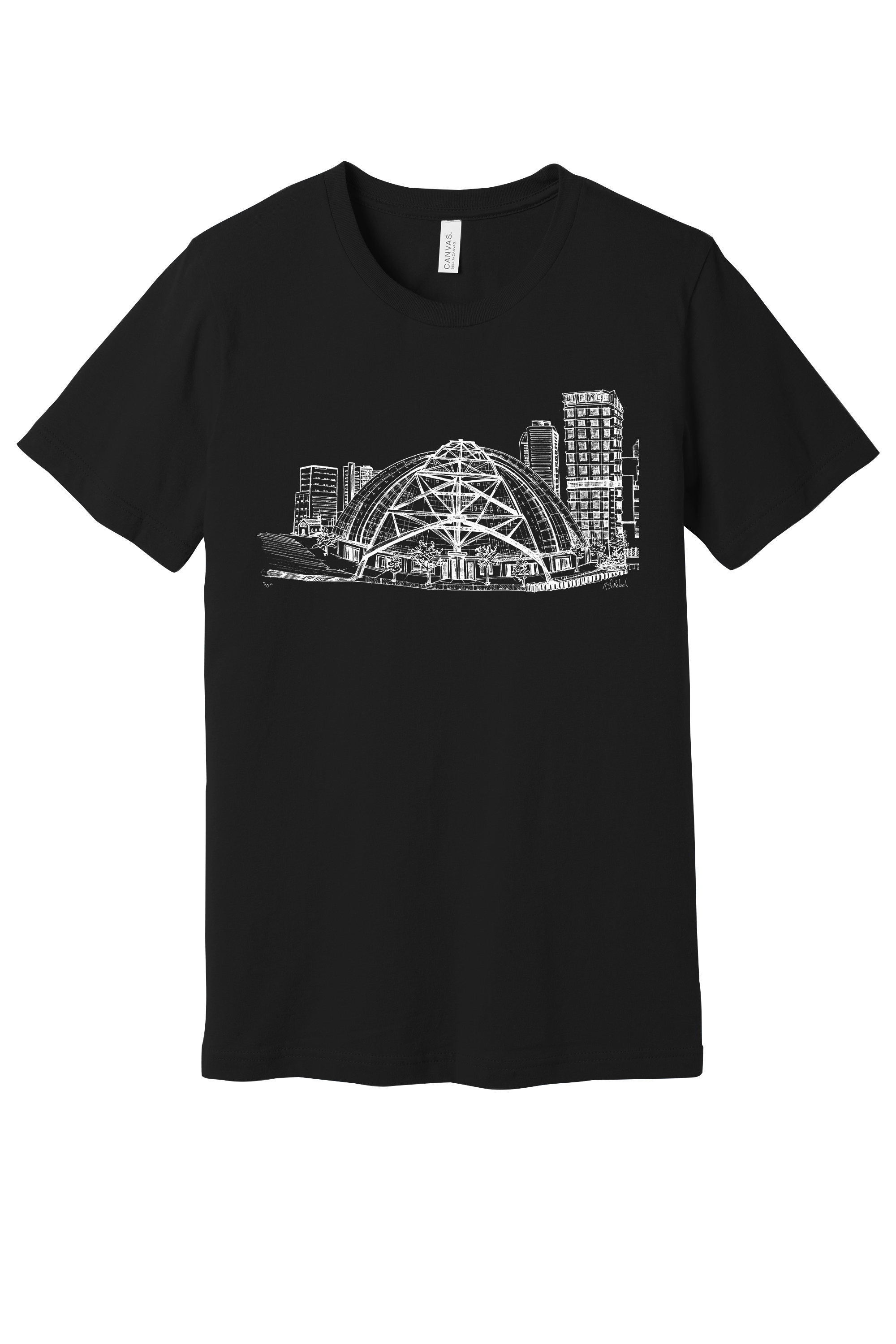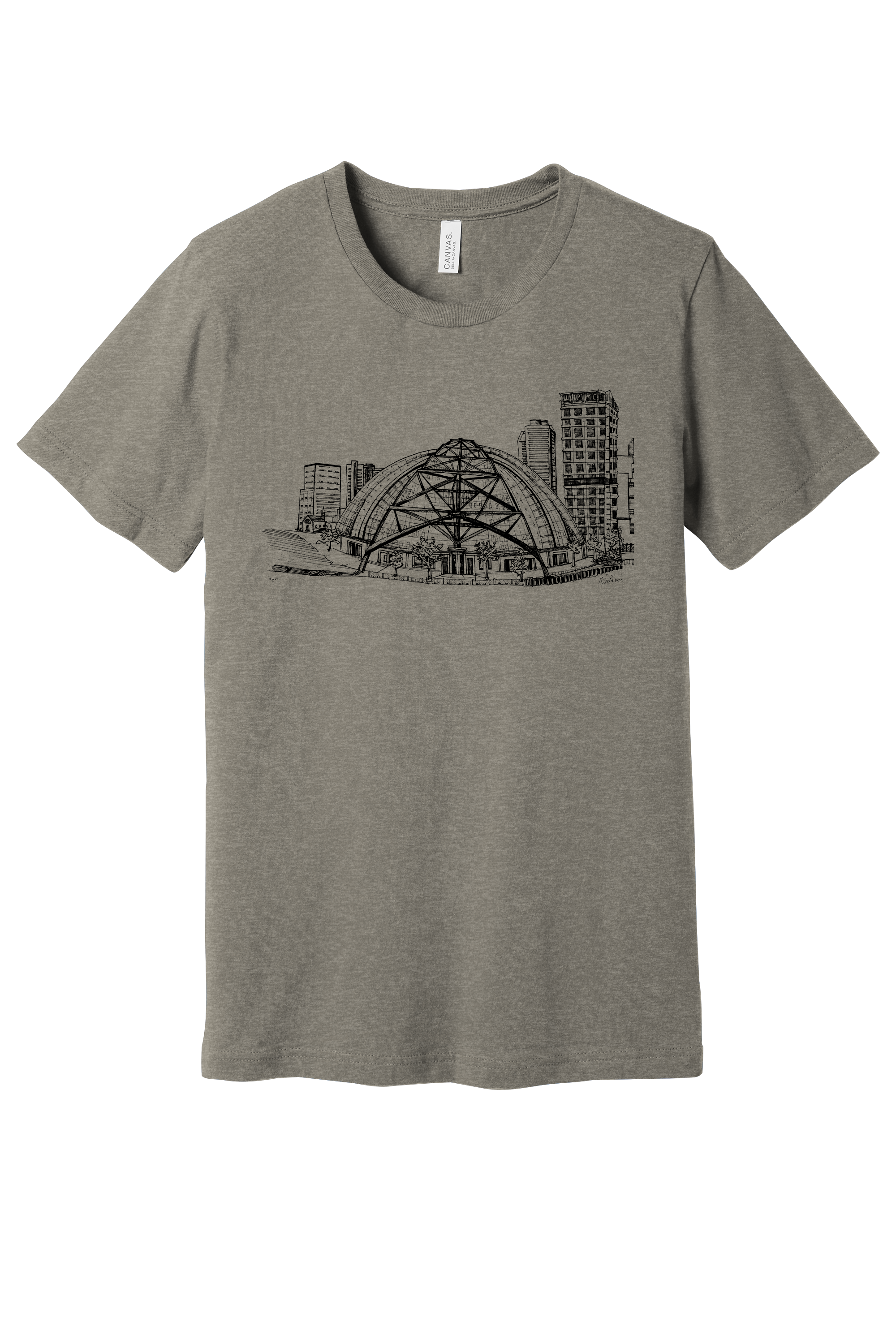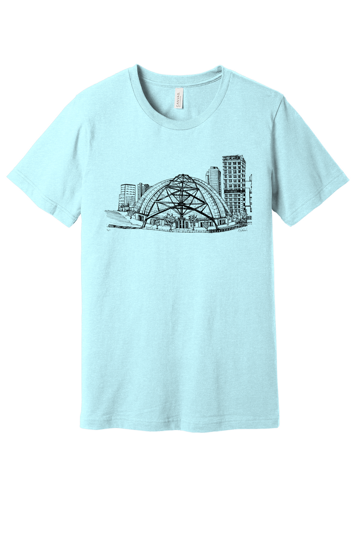 The Civic Arena T-Shirt is a versatile essential for daily wear. Made with soft, high-quality Airlume cotton, it features a tailored fit, crew neck, and side-seam construction for ultimate comfort. Featuring a unique Sharpie drawing by Kirsten Lowe-Rebel.