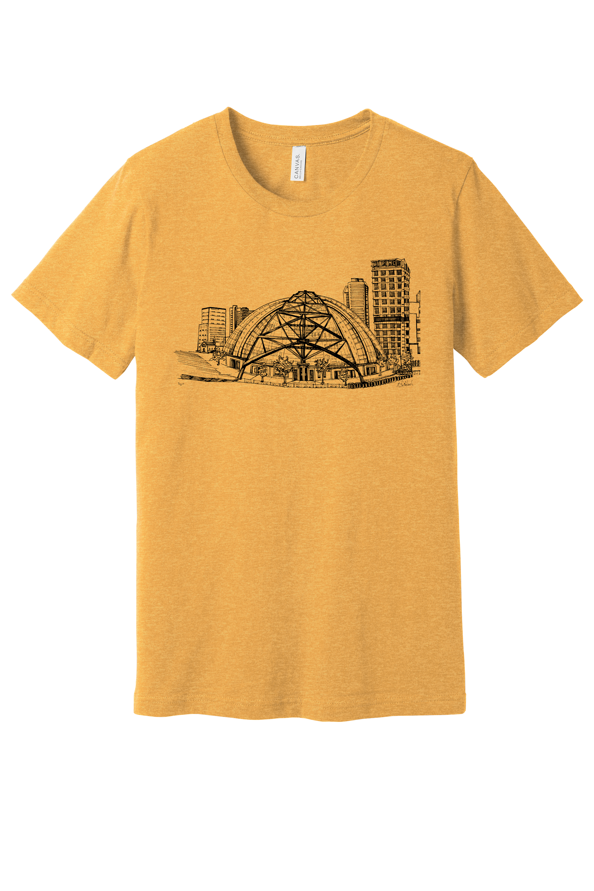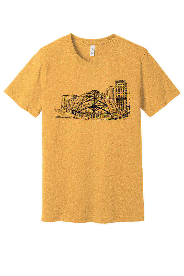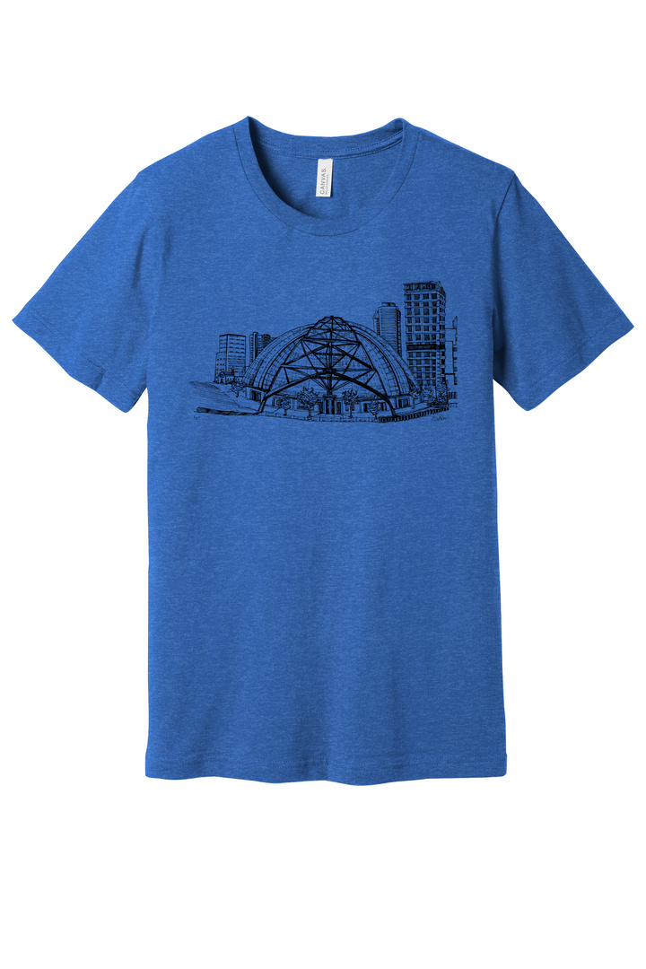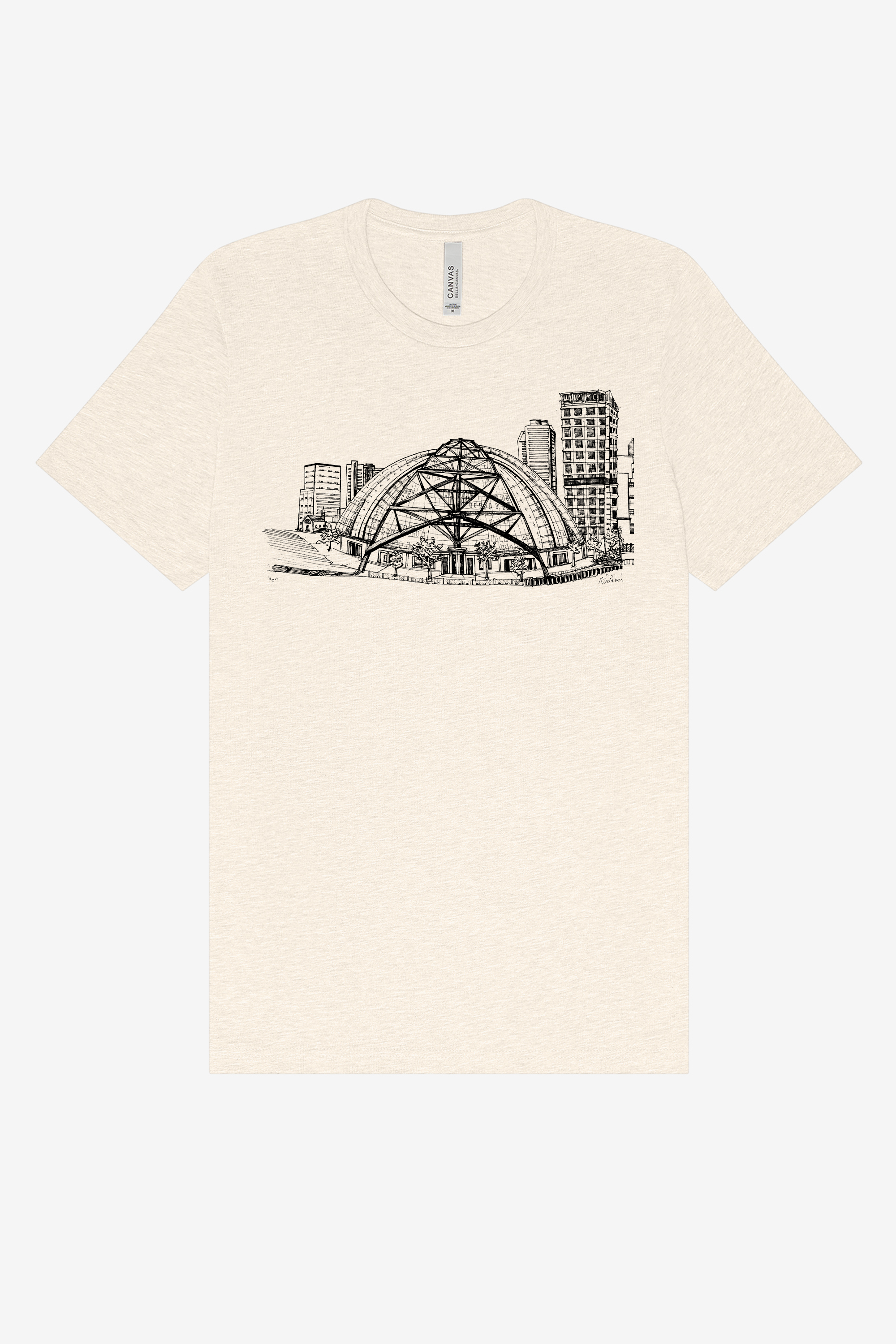 The Civic Arena T-Shirt is a versatile essential for daily wear. Made with soft, high-quality Airlume cotton, it features a tailored fit, crew neck, and side-seam construction for ultimate comfort. Featuring a unique Sharpie drawing by Kirsten Lowe-Rebel.