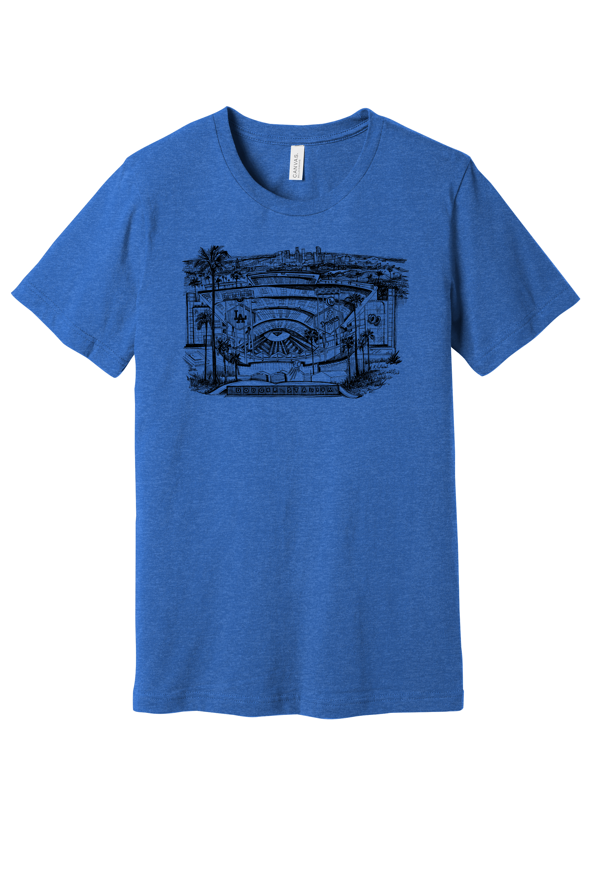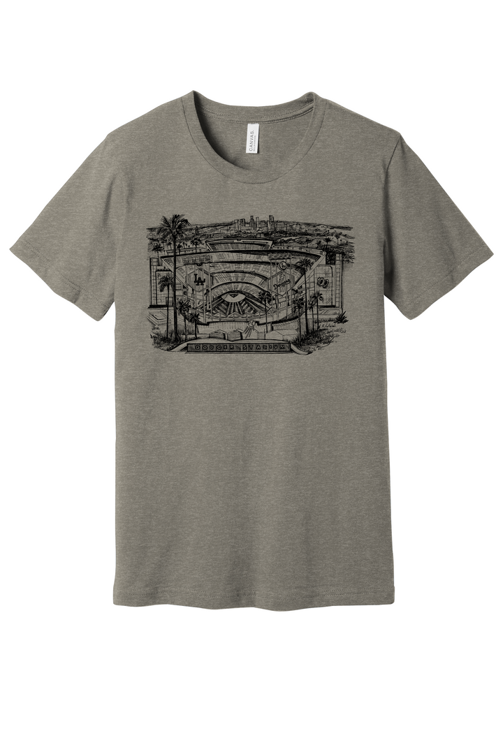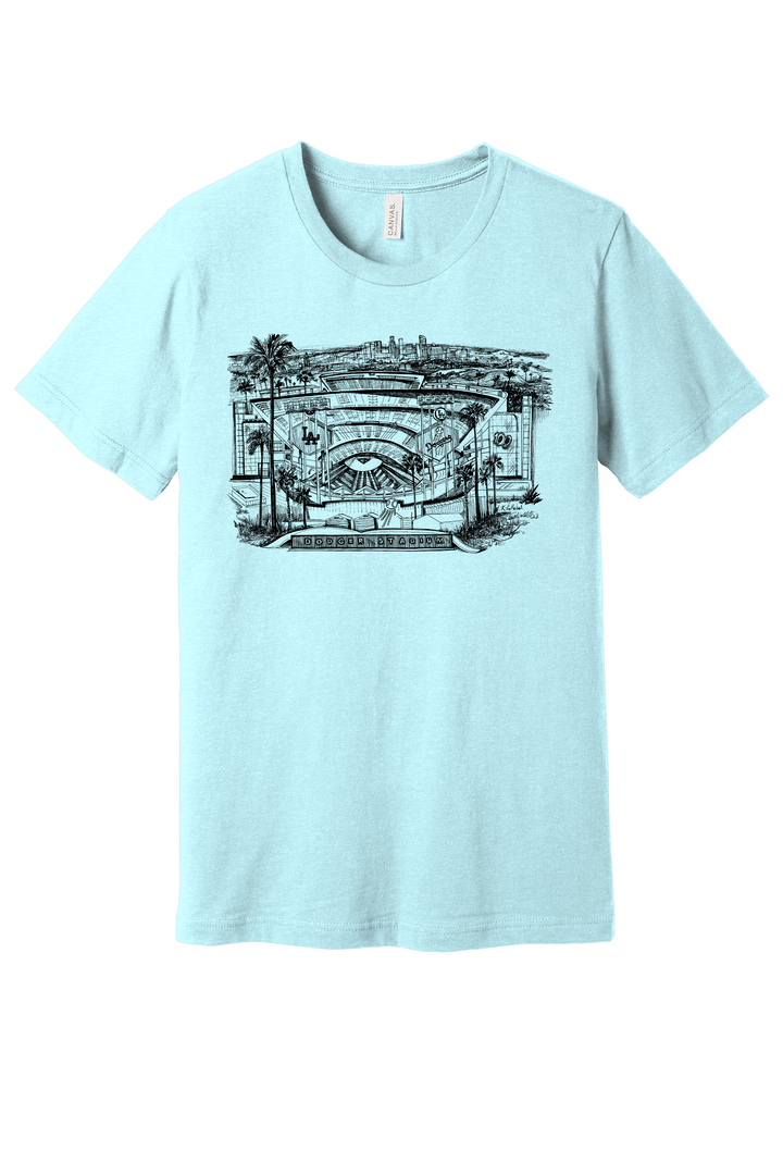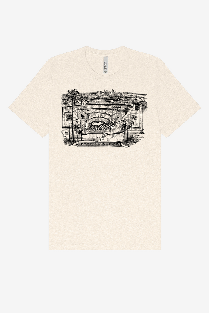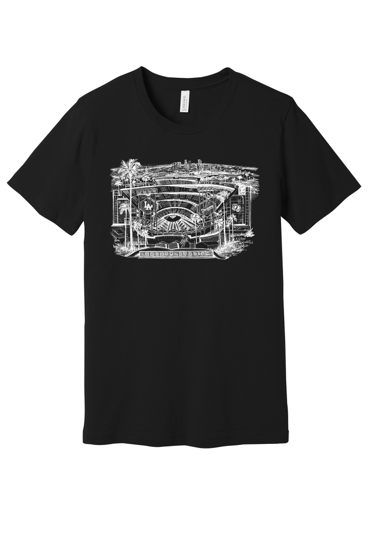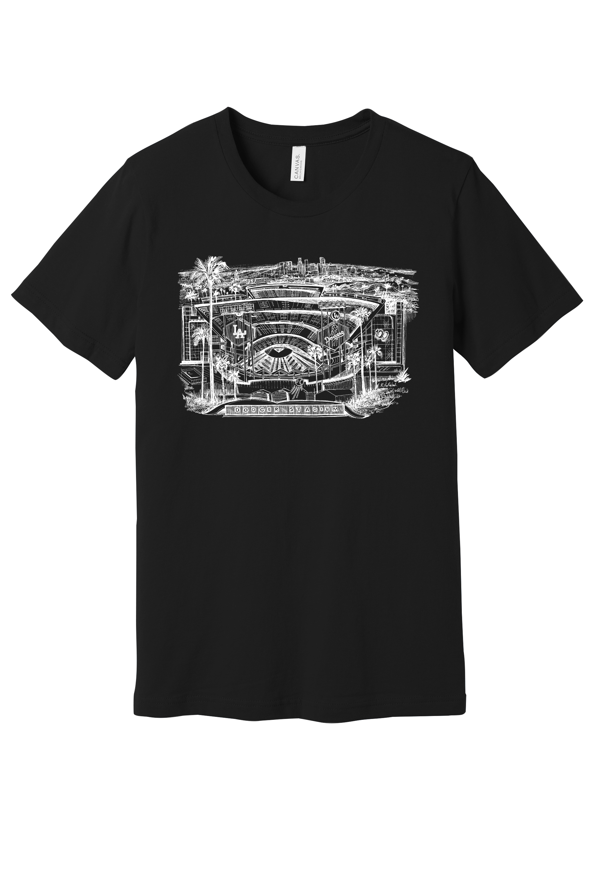 The Dodgers Stadium T-Shirt is a versatile essential for daily wear. Made with soft, high-quality Airlume cotton, it features a tailored fit, crew neck, and side-seam construction for ultimate comfort. Featuring a unique Sharpie drawing by Kirsten Lowe-Rebel.