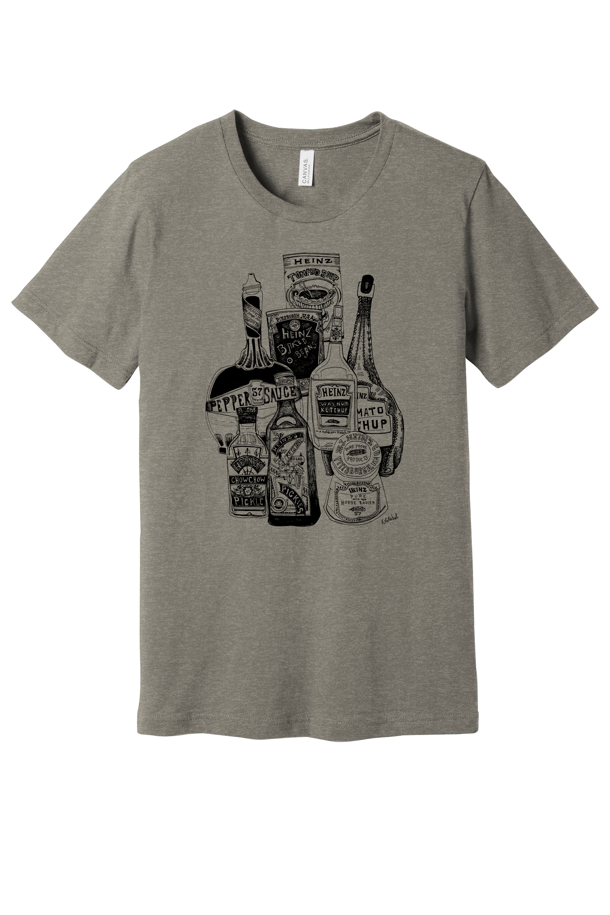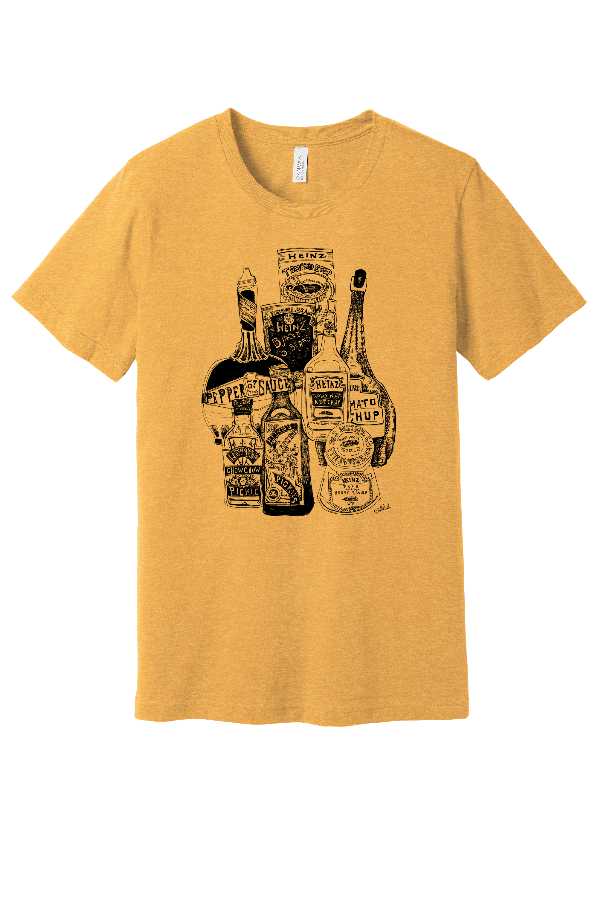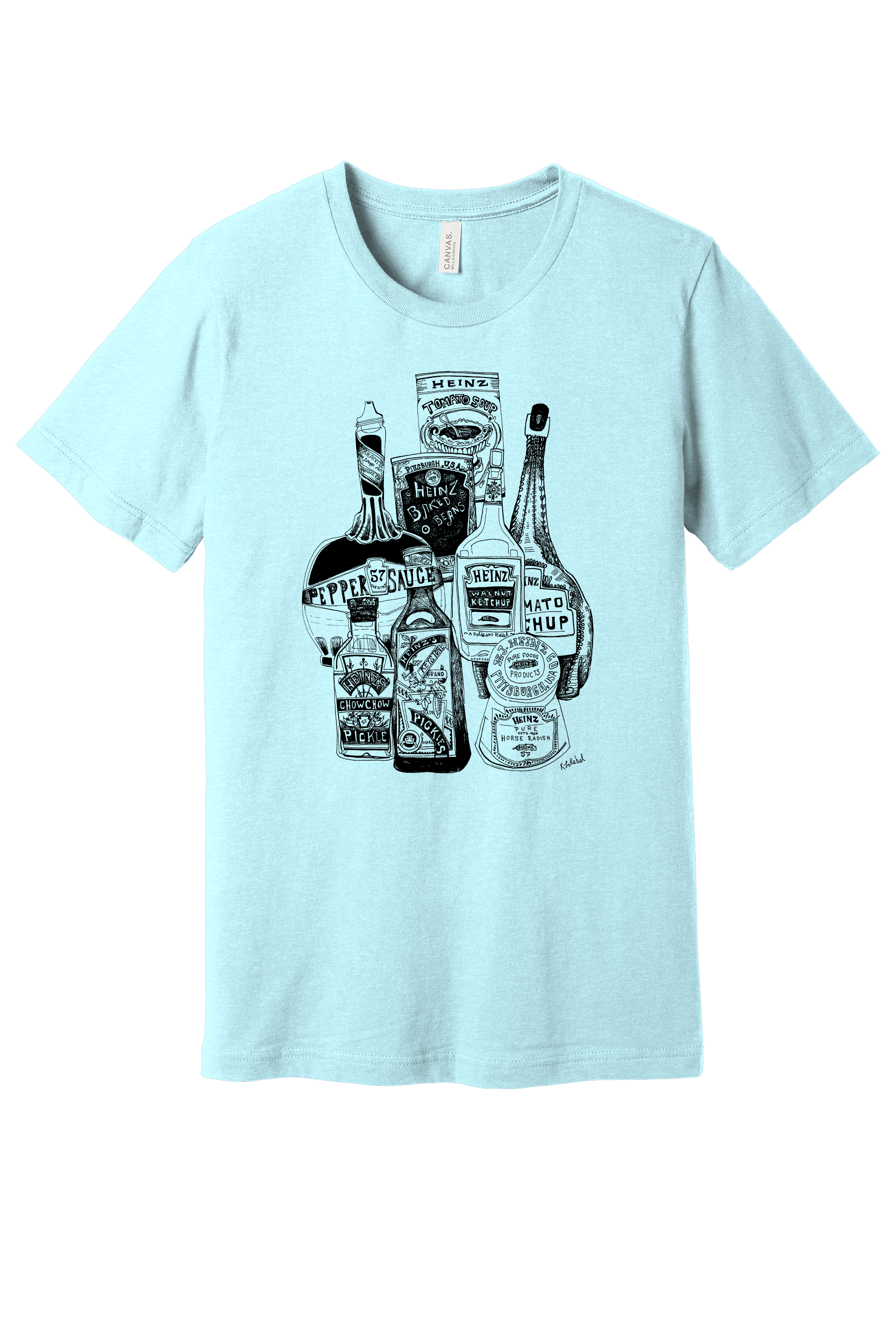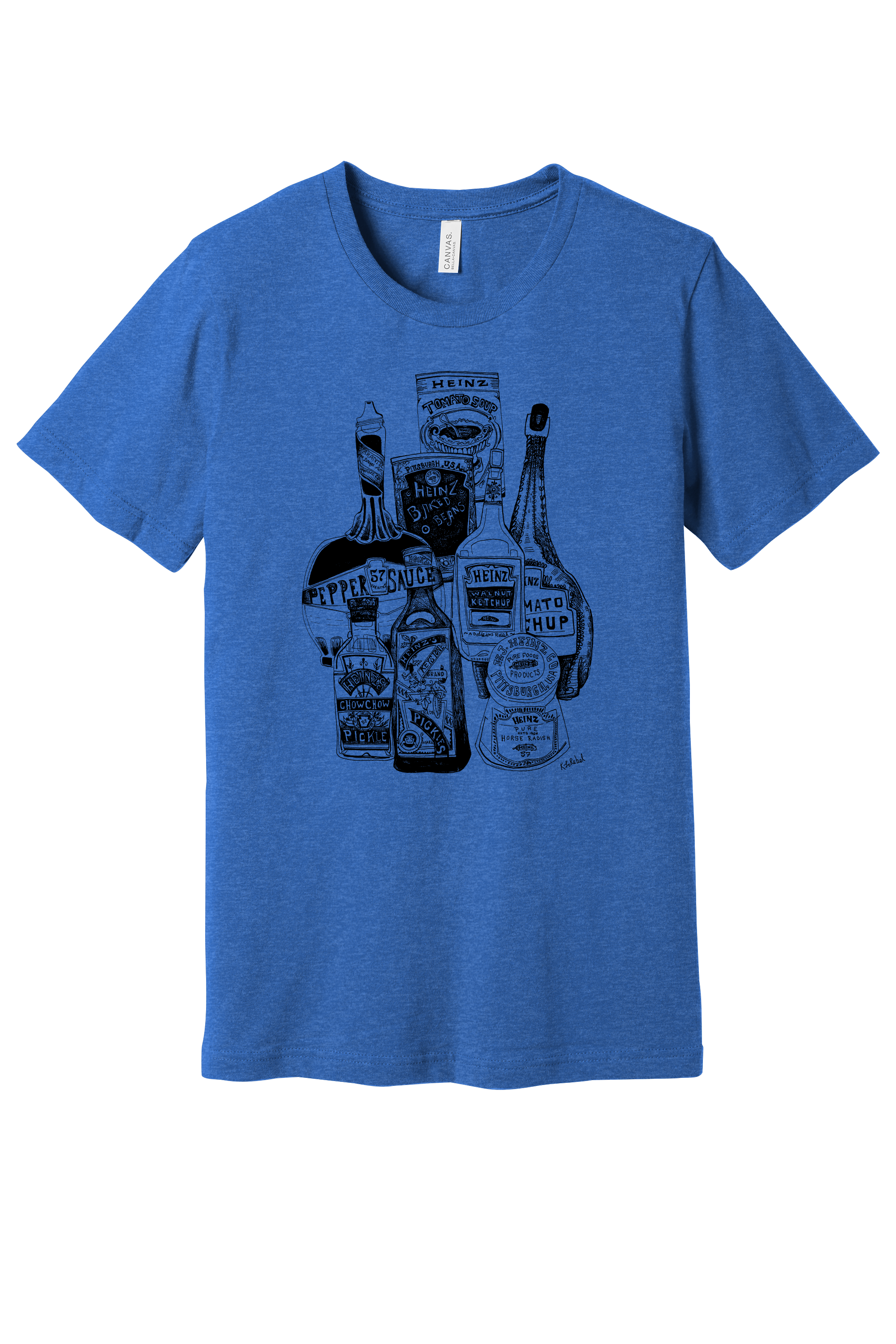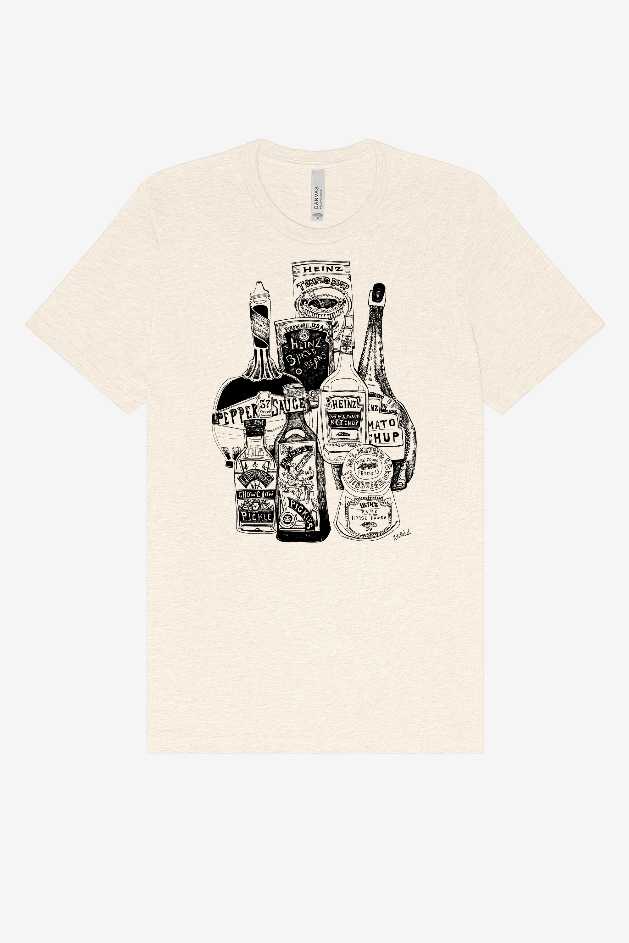 The Heinz Jars T-Shirt is a versatile essential for daily wear. Made with soft, high-quality Airlume cotton, it features a tailored fit, crew neck, and side-seam construction for ultimate comfort. Featuring a unique Sharpie drawing by Kirsten Lowe-Rebel.