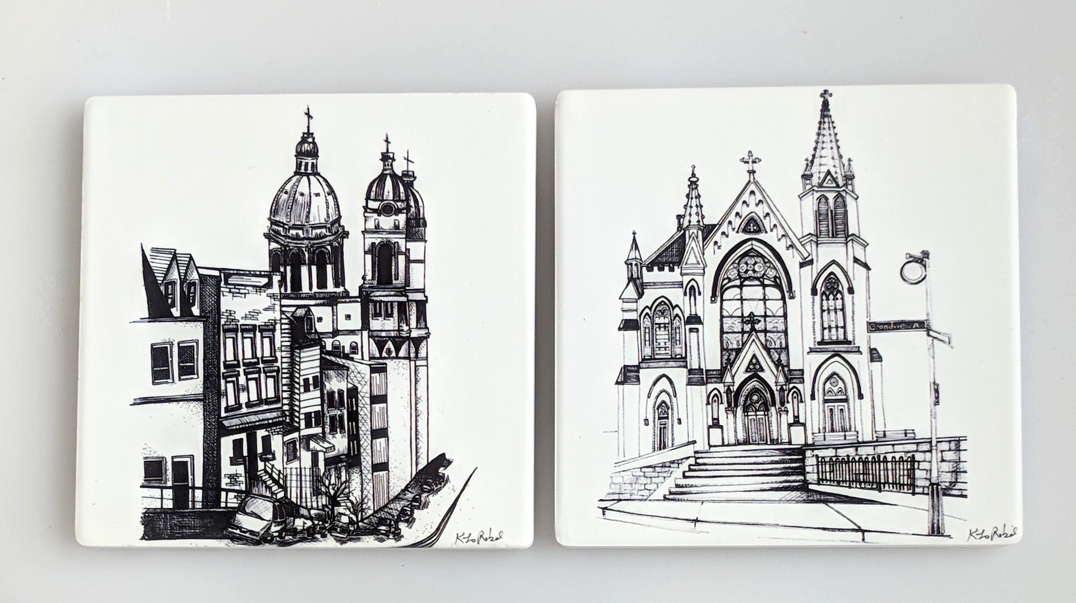 Pittsburgh Church Coaster Set - Immaculate Heart of Mary + Mary of the Mount